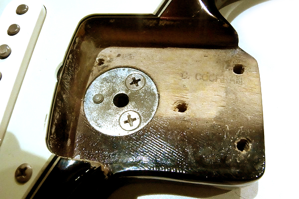 コントロールノブも近年ものです。ピックアップカバーも近年もので、