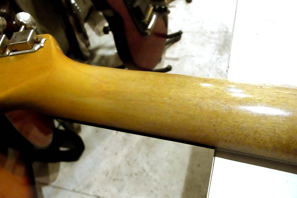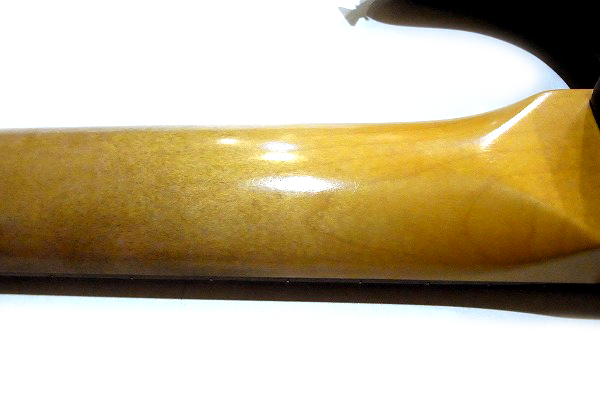 塗装はあめ色風になっており、ネック裏には使用による黒ずみや、塗装のウェザークラック、