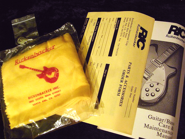 純正クロス&ケースの鍵&当時付属書類 Rickenbacker純正のクロスは未開封です。クロスを入れている透明のパッケージには小さな破れがございますが 未開封・未使用品です。その他、ケースの鍵、当時付属書類が付属します。