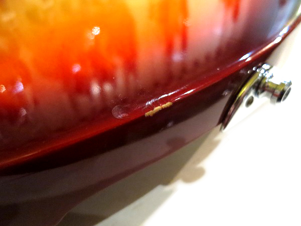 バック側のエンド部のエッジ部分に、エッジに沿った線状の塗装剥がれと打痕が1ヶ所見られる他、