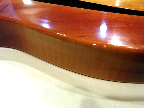 ボディのメイプルは、トップもサイドも綺麗にトラ杢が出ており、