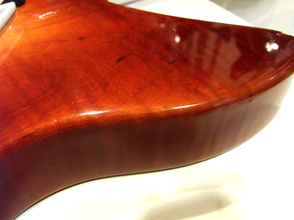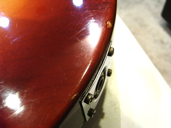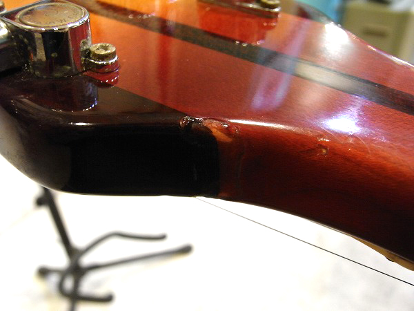 その他では、ヘッドのサイドにギタースタンドとの接触による塗装の変化によるダメージがある他、