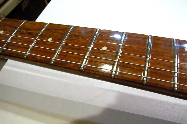 フレットは相応に使用による減りと軽度のへこみが見られますが、