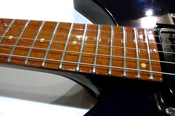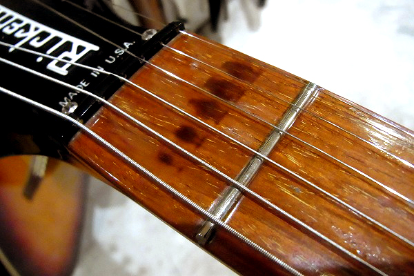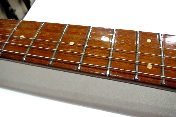 指板も相応に使用感があり、1フレット部に弾きこまれる事による変色、
