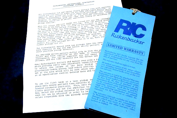黒のハードウェアとのマッチングに、ロッドカバーのRickenbackerの白文字でのロゴが効いていて、