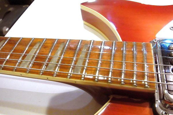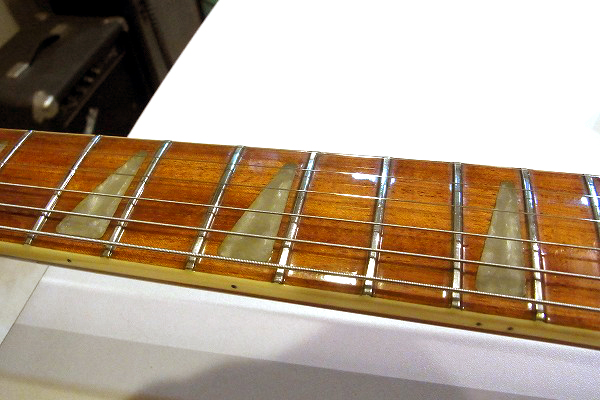 フレットはオリジナルのままで、エッジド・バインディングです。