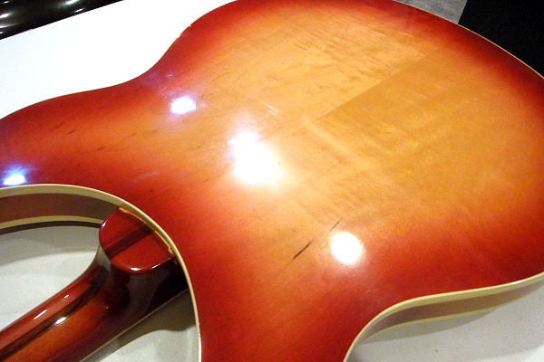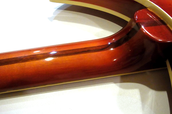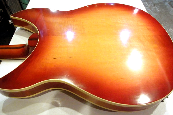 このモデルは330シェイプのボディに、ボディはトップ面、バック面ともにバインディングの付いた