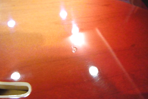 やや目立つものとしては、ボディトップのサウンドホール下辺りに