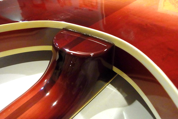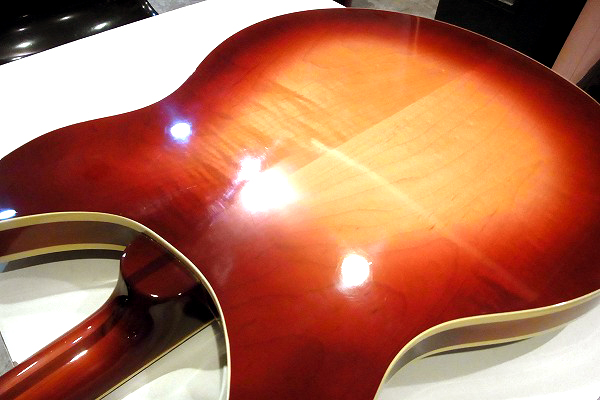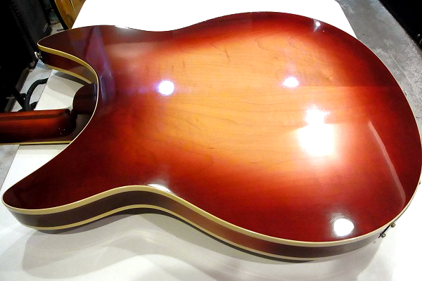 このモデルは330シェイプのボディに、ボディはトップ面、バック面ともにバインディングの付いた