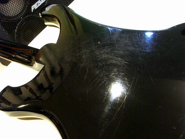 ボディのエッジ部分、ヘッドのエッジ部分を中心に、多数の小さな塗装剥がれがあります。