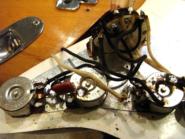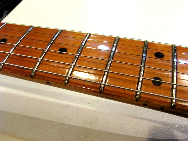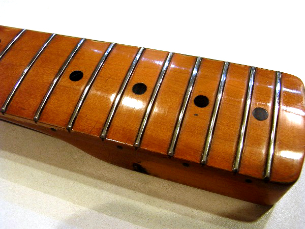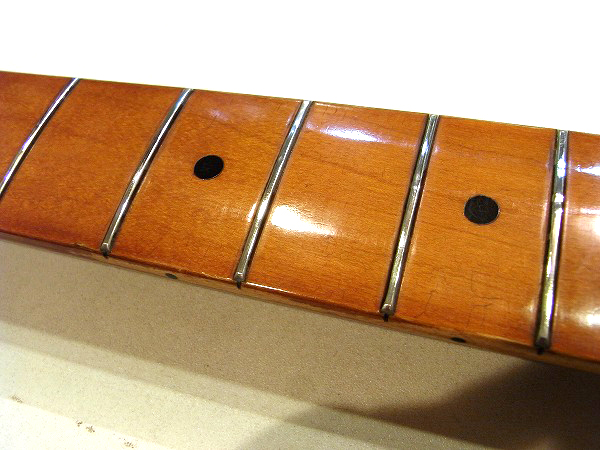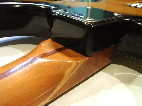 ネックはあめ色の色やけ、ウェザークラック、塗装の使用上の落ちが出ていますので、