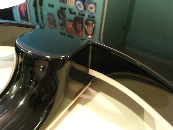 外観的にも非常に美品のコンディションです! 各部丁寧にクリーニング済で、コンパウンド、ポリッシュによる小さな傷の除去、 研磨、光沢出しを行っておりますので、塗装は光沢も取戻し、ピカピカの状態です。 ですが、USED品ですので、若干の経年感、使用感、小さな傷、細かな傷はございます。 目立つ傷としては、ボディトップのボディエンド近くに1mm大程度のごく小さな塗装欠けがございます。 この部分は目立たない様に黒でタッチアップしてあります。 その他、バックにやや擦り傷、小さな打痕はあるものの、 それ以外はほとんど目立った大きな傷は無く、光に当てて、角度を変えて見ると分かる程度の、 ごく細かな擦り傷、使用感、塗装の経年感程度です。 ハードウェアも丁寧に磨きを入れ、ピカピカの綺麗なコンディションです。 全体的に大きな目立つダメージは無く、非常に美品といって良いグッドコンディションです。
