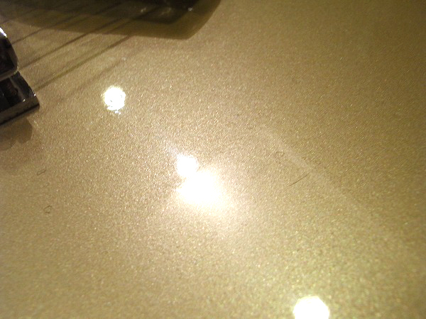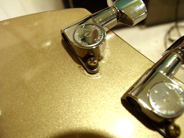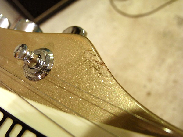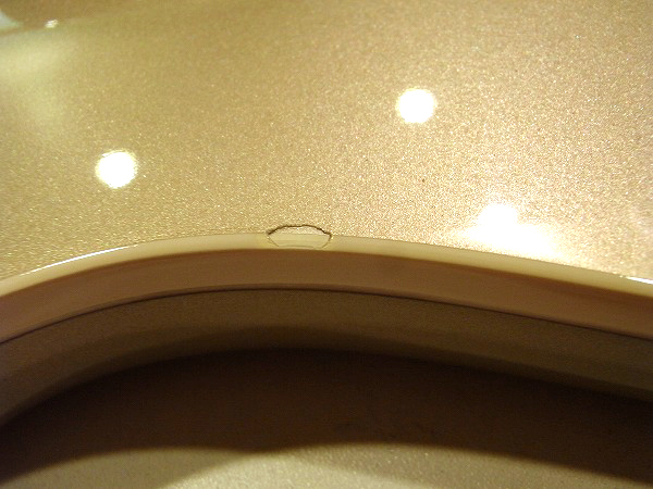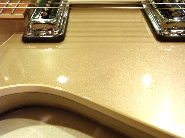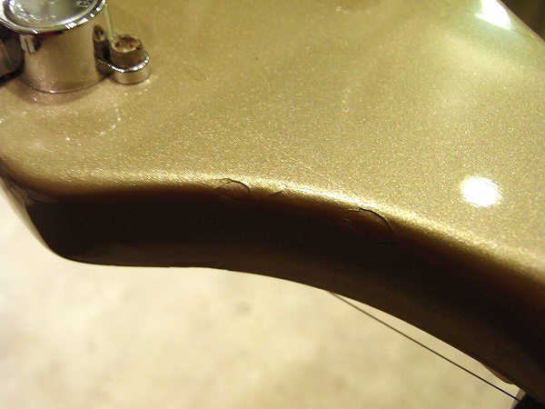 外観的にも小さな傷や小さな塗装剥がれがあるものの、まだまだ綺麗なコンディションです! 各部丁寧にクリーニング済で、コンパウンド、ポリッシュによる小さな傷の除去、 研磨、光沢出しを行っておりますので、塗装は光沢も取戻し、ピカピカの状態です。 ですが、USED品ですので、若干の経年感、使用感、小さな傷、細かな傷はございます。 目立つものとしては、ボディのエッジ部分に小さな塗装剥がれがいくつかございます。 また、一番大きなものとしては、ヘッドのエッジ近辺にやや大きめの塗装剥がれがいくつかございます。 塗装剥がれ部分は同色でタッチアップしてありますので、あまり目立たない様にはなっています。 その他、全体的に小さな打痕傷や擦り傷はございます。 ハードウェアは丁寧に磨きを入れ、ピカピカの綺麗なコンディションです。 また、指板の1フレット〜4フレットにやや減りがあり、黒ずんでいます。演奏上は全く問題ありません。 全体的には、相応に小さな傷はあるものの、大きな傷や目立つものが少なく、 塗装の光沢も出ていますので、まだまだ綺麗なコンディションです。