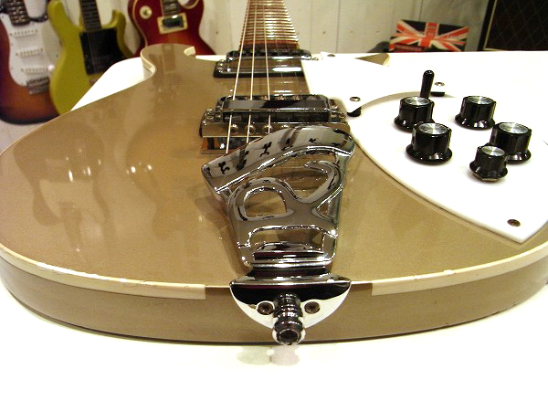 サウンドの方もリッケンバッカー・ソリッドならではの個性的かつ唯一無二の魅力を持ったサウンドで、 芯とハリのある煌びやかでブライトなカラっとした質感の、リッケンならではの魅力を持った独特のトーンと、 通常のセミアコ構造のリッケンと異なり、ソリッドならではの箱鳴りしない硬めのシャープでタイトなサウンドが 非常に特徴的かつ魅力のサウンドです。 また、ネックが330、360などの他のモデルに比べて、やや丸太なシェイプとなっており、 これにより、太く芯のあるサウンドを生み出しており、箱鳴りしない分の太さ、鳴りの豊かさを補っています。 また、フレットもやや現代的に山の高めのタイプのフレットが付いており、 非常に弾きやすい上、ピッチ感の安定度が非常に増しています。 ピッチの狂いの少ないコードの響きは気持ち良く、安定した音程で演奏出来ます。 その上、トーン自体はやはり聴くとそれと分かる、リッケン・サウンドで、 幅広いジャンルで使用可能なモデルでありつつも、リッケントーンを加味し、 その音楽のバックボーンやテイストを醸し出すことの出来るほどの存在感で、 非常に魅力的なサウンドのモデルです。