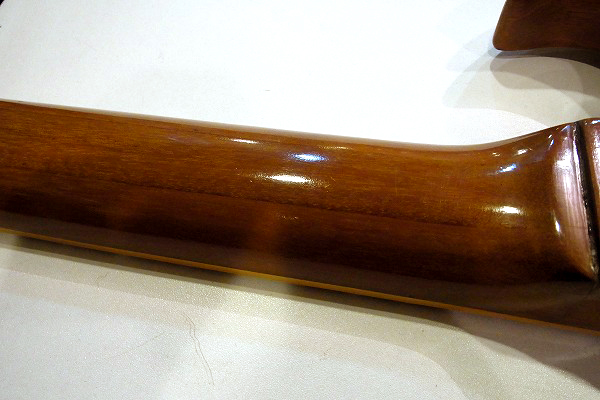 修理箇所は、ネックエンド、ボディとの接合部(セットネック部)で、折れの修理歴があります。
