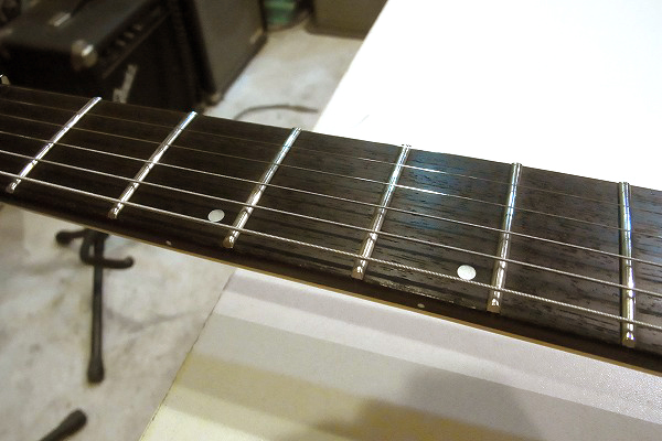 現在弦高は12フレット1弦1mm、6弦1.5mmの圧倒的ローアクションで、弾き心地は抜群です。