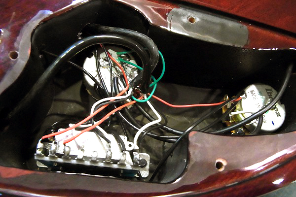 リアにセラミックのDimarzio IBZ-B ハム、センターにDimarzio IBZ-S シングル、