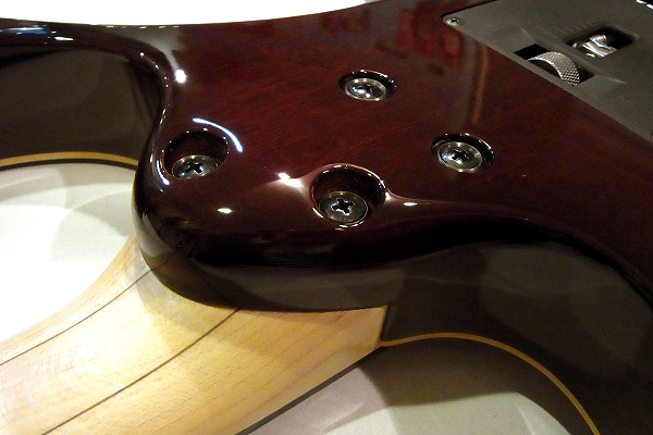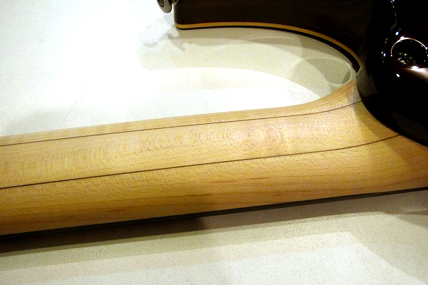 ネックはメイプルで、ウォルナットとの5ピース構造になっており、
