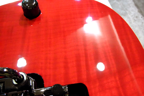 ルックス的な高級感を持たせる為にラミネートされた薄いフレイムメイプルとは似て非なるもので、