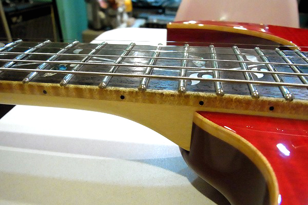 現在弦高は12フレット1弦1mm、6弦1.5mmの圧倒的ローアクションで、弾き心地は抜群です。