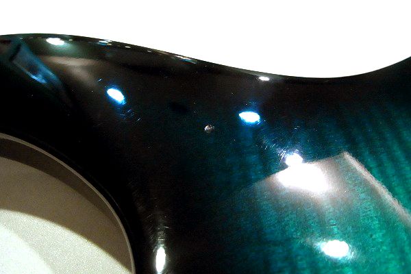 また、ボディバックのネックジョイント近辺にも塗装の軽度のクラックがあります。