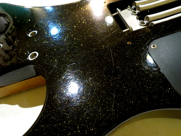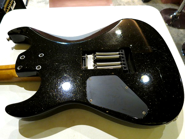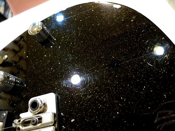 ボディシェイプはSTシェイプ、カラーは金ラメの入ったブラックカラーとなっており、