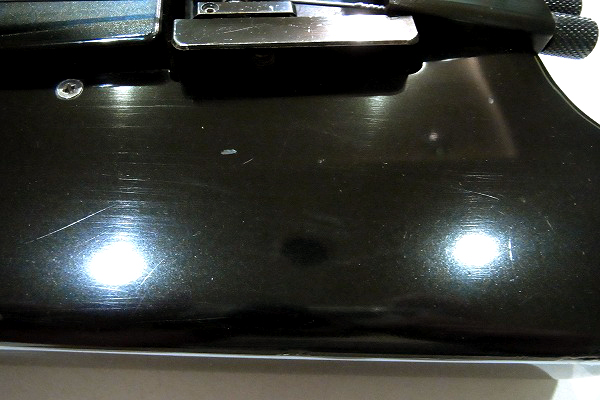 やや目立つダメージとしては、フロントピックアップのカバーの端が使用により