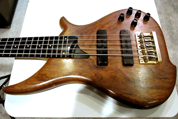 様々なバリエーションがありますが、こちらはブビンガ・トップの5弦仕様のモデルです。