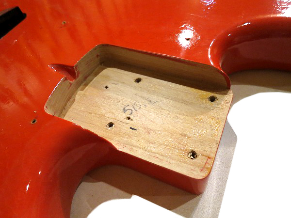 ネックジョイント部横のボディのエッジ部分に小さな塗装剥がれがございます。