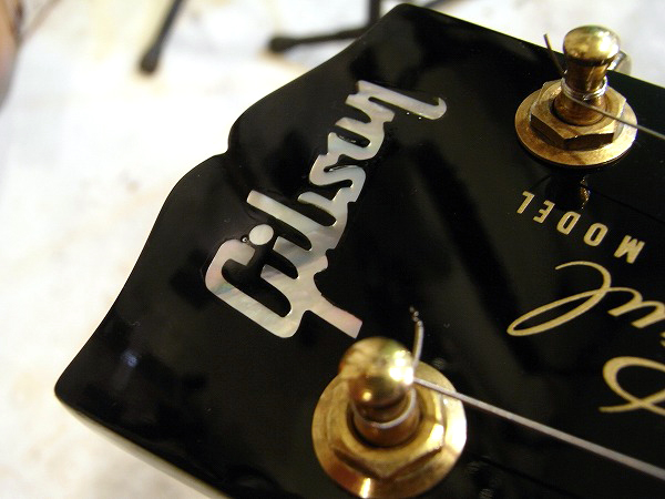 本物のGibsonインレイロゴを埋め込み、塗装され、Les Paul MODELロゴも入れられています。