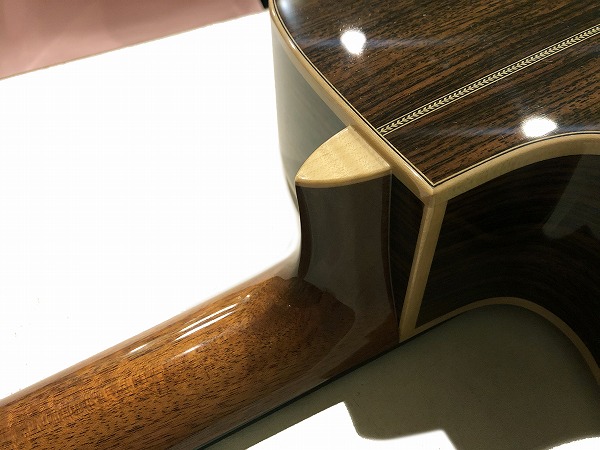 オリジナルのボディスタイルはコンパクトかつ胴厚85〜105mmと薄めのスタイルで、非常にピッキング・レスポンスの良いトーンながら、しっかりと深みのある豊かな鳴り感と、かつこもらず分離の良いサウンドを持っているのが大きな魅力です。トップはジャーマン・スプルース単板、サイド&バックはインディアン・ローズウッド単板のオール単板仕様で、ネックはマホガニー、指板はエボニー、ブリッジもエボニーといった仕様です。フィニッシュはトップのみラッカーフィニッシュ、サイド&バックはウレタンフィニッシュとなっています。低音から高音まで非常にバランス良い豊かな鳴りと美しい音色、輪郭のはっきりとした分離感のあるトーン、上品かつ繊細で鳴りの良い、フィンガーピッカー向け上質アコースティックサウンドといった印象です。指板ポジションマークインレイはスノーフレーク・インレイ、ヘリンボーンやバインディングはメイプルの木目が生かされるなど、ルックス的にも上質で品の良いルックスです。