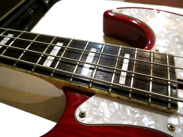 弦高はローアクションで弾きやすく、大きなビビリやつまりも無く、良好な出音となっています。