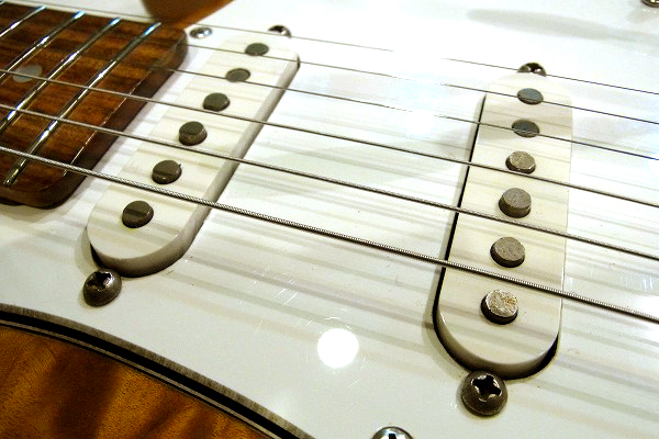 アッセンブリ、電気系統はカスタムされており、オリジナルではありません。 元々はH-S-Hレイアウトのアクティヴ仕様のモデルでしたが、 こちらはパッシブ仕様にカスタムされています。 まず、ピックアップはリアにDimarzioのDP103、 センターとフロントにFender