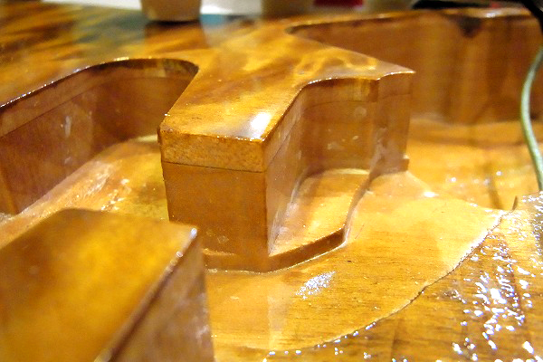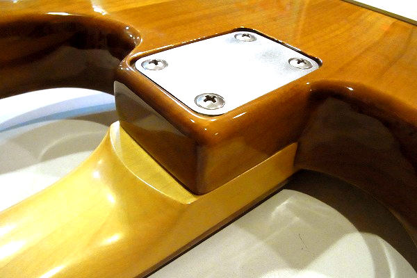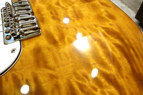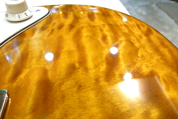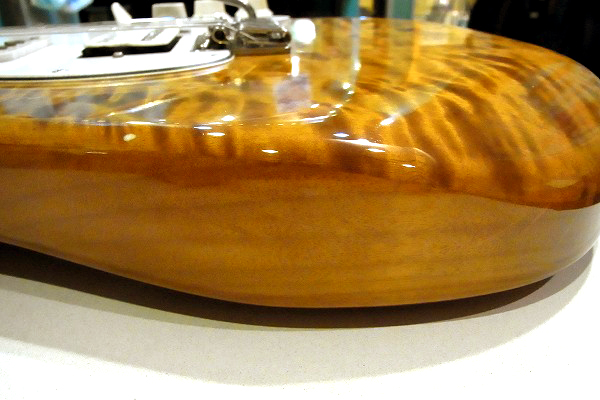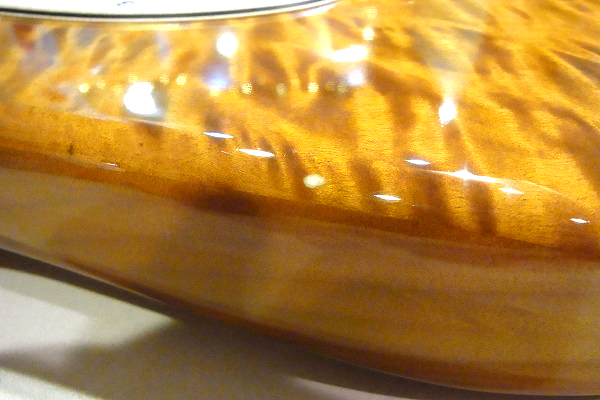 まず目を引くのはなんといってもトップの美しい木目の激キルト・メイプル・トップ。
