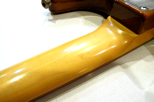 コンディションは非常に良好です。 ネックは反りも無く、綺麗に真っ直ぐにロッド調整済で、 ロッドは適正に調整後、まだ余裕のある状態ですので今後の矯正も問題ありません。 フレットもまだ8割がた残っており、へこみや弦溝も無く、 さらに丁寧に磨きも入れており、光沢もピカピカの綺麗な美品コンディションです。 指板も非常に綺麗なコンディションで、減りや大きな傷もありません。 さらにこちらも丁寧にメンテナンス、クリーニングも施しており、 非常に綺麗で良好なコンディションです。ナット、ブリッジサドルも非常に良好な状態です。 さらに丁寧にしっかりとセッティングも行っております。 現在弦高は12フレット上1弦1.2mm、6弦1.5mmと、非常にローアクションにセッティングしています。 各ポジション、フレットバズ(ビビリ)や音づまりも無く良好な出音で、 弦高も低く、非常に弾きやすい状態にセッティング済です。トレモロユニットも非常に良好、 電気系統もチェック、クリーニング、メンテナンス済で、ガリなども無く良好な出音です。 プレイコンディションは非常に良好なコンディションで、全く問題ありません。