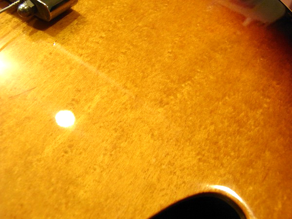外観的にも、大きなダメージは全く無く、非常に美品のグッドコンディション品です。 試演、保管時の微小傷、経年変化程度の、あまり使用されていないと思われる状態で、 年式を考慮すると極美品と言って良いコンディションです。 各部丁寧にクリーニング済で、コンパウンド、ポリッシュによる小さな傷の除去、 研磨、光沢出しを行っておりますので、塗装はピカピカのツヤのある綺麗な状態です。 ですが相応に年数が経過しており、保管や使用時の軽度の傷、経年感は多少ございます。 目立つ大きな傷は全くありませんが、光にかざして角度を変えて見ると分かる程度のごく細かな擦り傷、 ごく小さな打痕程度はあります。しかし塗装剥がれや大きな打痕は一切ありません。 ブリッジ、テールピースなどハードウェアも丁寧に磨きも入れており、 経年による若干のくすみはあるものの、まだまだピカピカの状態です。 多少の経年感、小傷はあるものの、ほぼデッドストックとお考えいただいて良いくらいの状態で、 ほとんど大きな傷の無い極美品、塗装の光沢もピカピカの極上コンディションです。