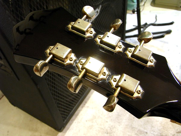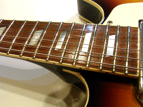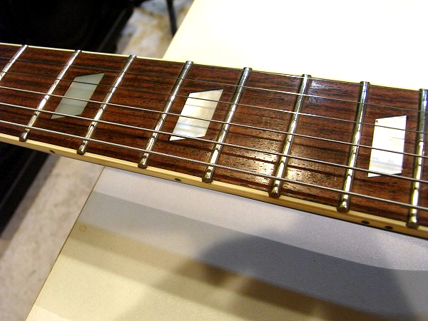 コンディションは非常に美品の良好なコンディションです。 多少のダメージ、使用感、経年感程度はありますが、あまり使用されておらず、非常に良好な状態です。 ネックは反りも無く真っ直ぐにロッド調整済です。 ロッドももまだ余裕のある状態ですので、今後の矯正も全く問題ありません。 フレットも大きな減りは無く、まだ8分以上残っています。 ひどいへこみや弦溝もありません。 さらに丁寧に磨きも入れておりますので、光沢もピカピカの綺麗なコンディションです。 指板も丁寧にクリーニング、メンテ済で非常に良好な状態です。 現在弦高は12フレット上1弦1.2mm、6弦1.5mmと非常にローアクションにセッティングしています。 このセッティングで各ポジション、フレットバズ(ビビリ)や音づまりも無く良好な出音です。 電気系統も全く問題ありません。プレイコンディションは非常に良好です。