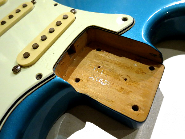 ボディはアルダーで、ザグリは3シングル仕様、ザグリのルーター加工も綺麗です。