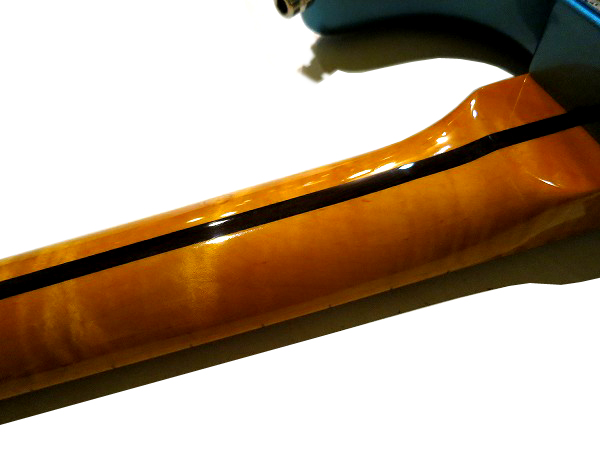 ネックは全面に美しい激トラ杢が浮き出た、フレイムメイプルネックです。