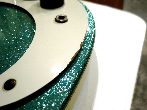 ピックガードのエッジ部分にやや白い塗装の剥がれが見られるほか、