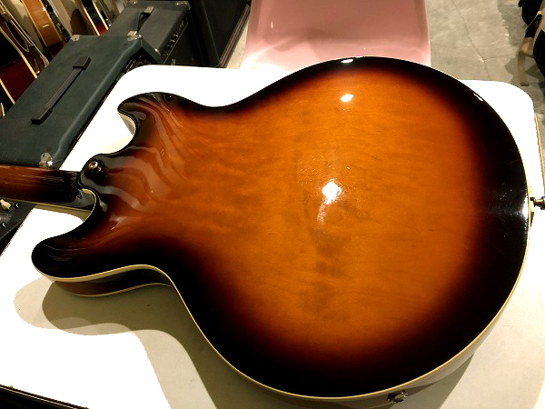 Gibson ES-335に近いスタイルですが、少し小ぶりの15.7インチサイズのセミアコ構造のボディは、