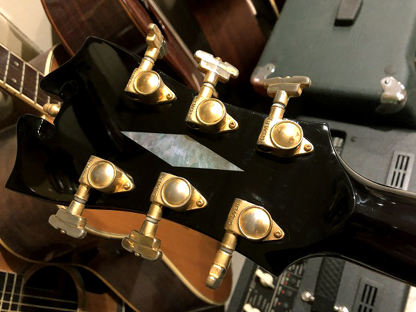 指板インレイはスプリット・ブロック・インレイ、ペグはGROVER インペリアルペグです。