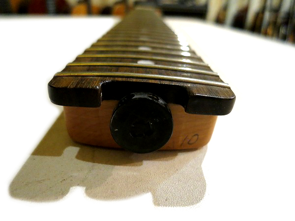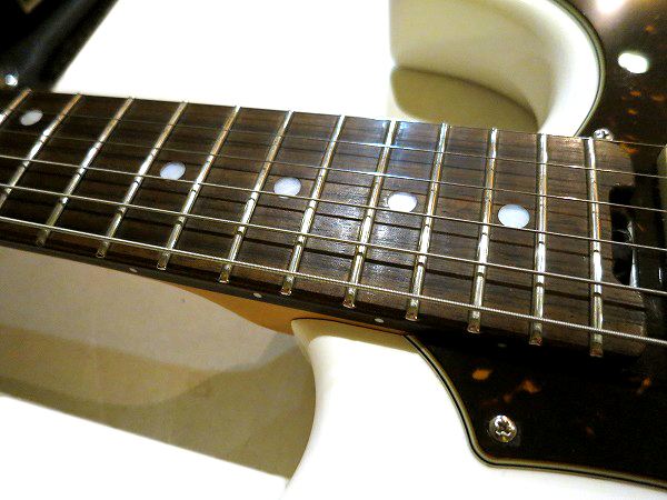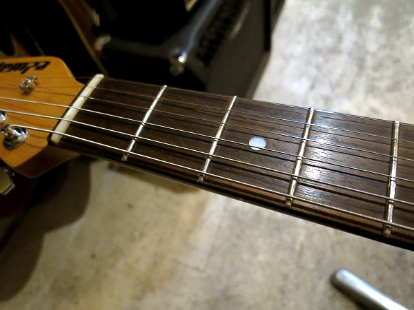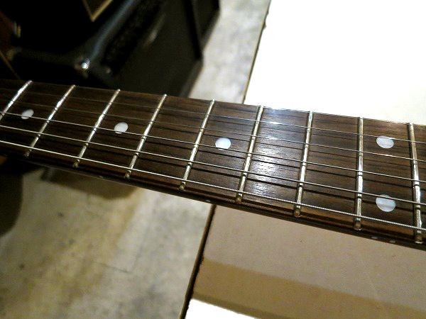 コンディションは非常に良好です。 ネックはロッド調整済で、反りも無く真っ直ぐで、良好な状態に調整済です。 ロッドはまだ十分に余裕がありますので、今後のネック反り矯正にも対応します。 フレットもほぼ減りは全く無く、ほぼ10割がた残っています。 5フレット3弦部分に1ヶ所だけ線状の傷があり、少しだけひっかかりを感じますが、 使用上大きな問題はありません。 フレットは丁寧に磨きも入れており、光沢、艶のある綺麗な極美品コンディションになっています。 指板も非常に良好なコンディションで、ほぼ減りや目立つ傷も無く、 さらに指板も丁寧にクリーニングの上、コンディショニングを行っておりますので とても綺麗で良好な美品コンディションになっています。 ナット溝、ブリッジ溝も減りは無く、非常に良好な状態です。 しっかりとメンテナンス、セットアップも施しておりますので、 弦高はローアクションで弾きやすく、ビビリやつまりも無く、非常に良好な出音となっています。 現在弦高は12フレット上1弦1.2mm、6弦1.5mmです。 ペグ動作も問題無く、緩み等もありません。 プレイコンディションは良好で全く問題ありません。