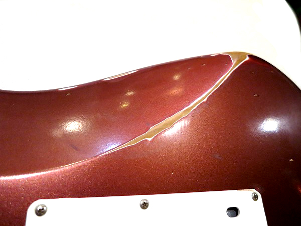 ヴィンテージギターの塗装の剥がれや傷がリアルに再現されており、