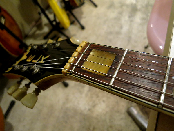 指板インレイはやや欠け、浮き、へこみ等が見られますが、使用上は問題ありません。