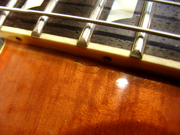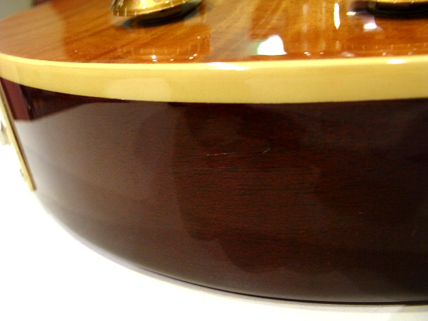 目立つものとしては、ボディの指板横の接続の部分に軽度のクラック、ごく小さな塗装剥がれがある他、
