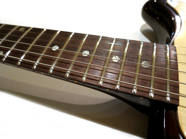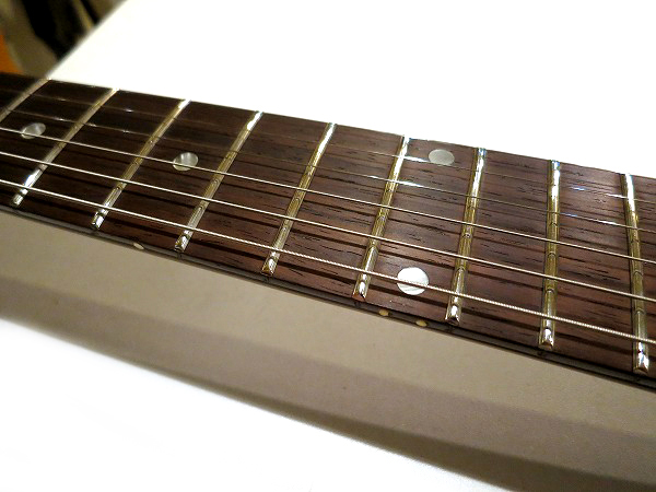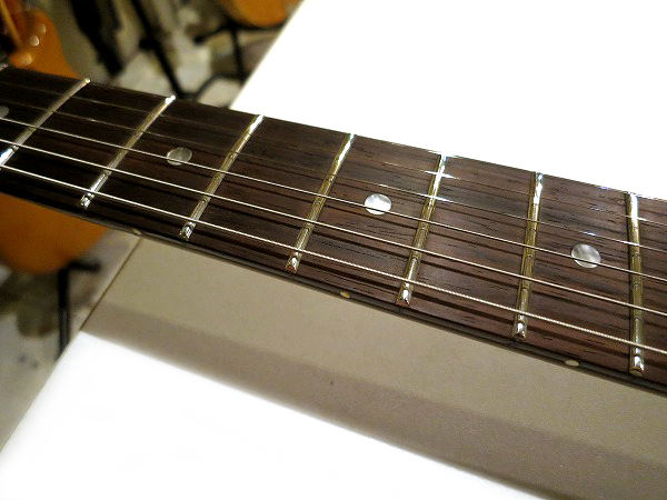 フレットはDunlop #6150 Jumboに打ちかえ済で、フレットはほぼ新品状態、