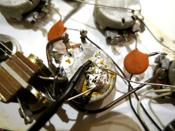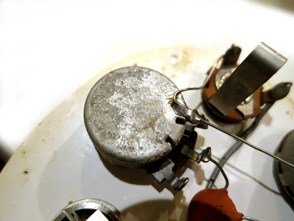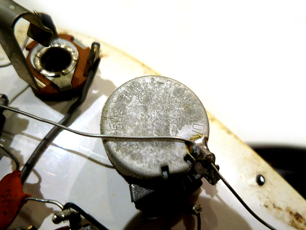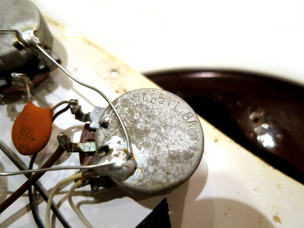 ピックアップ、ポットも1965年製のオリジナルのままです。