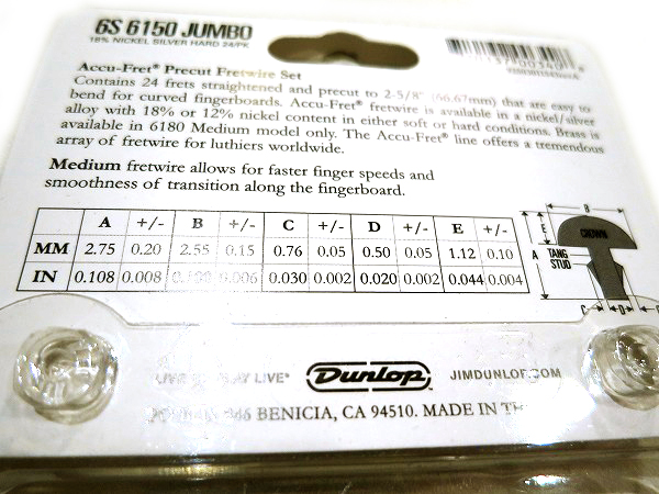 フレットは前述の様にDunlop製の#6150 Jumboに新品交換済で、