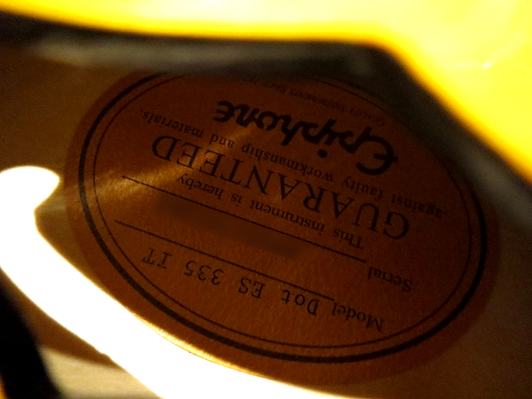 Fホール内のラベルには「Model Dot ES 335 IT」の記載がありますが、